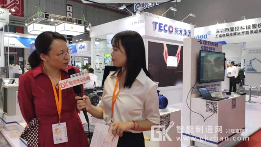 東元技術(shù)服務(wù)事業(yè)部IPTS處長鄒英女士接受智能制造網(wǎng)記者采訪的畫面
