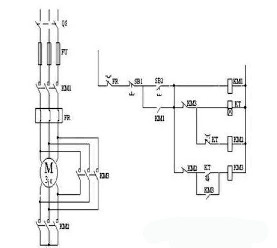 電機(jī)要實(shí)現(xiàn)正反轉(zhuǎn)控制,將其電源的相序中任意兩相對調(diào)即可(我們稱為換相),通常是V相不變,將U相與W相對調(diào)節(jié)器,為了保證兩個(gè)接觸器動(dòng)作時(shí)能夠可靠調(diào)換電動(dòng)機(jī)的相序,接線時(shí)應(yīng)使接觸器的上口接線保持一致,在接觸器的下口調(diào)相。由于將兩相相序?qū)φ{(diào),故須確保二個(gè)KM線圈不能同時(shí)得電,否則會(huì)發(fā)生嚴(yán)重的相間短路故障,因此必須采取聯(lián)鎖。為安全起見,常采用按鈕聯(lián)鎖(機(jī)械)與接觸器聯(lián)鎖(電氣)的雙重聯(lián)鎖正反轉(zhuǎn)控制線路(如下圖所示);使用了按鈕聯(lián)鎖,即使同時(shí)按下正反轉(zhuǎn)按鈕,調(diào)相用的兩接觸器也不可能同時(shí)得電,機(jī)械上避免了相間短路。另外,由于應(yīng)用的接觸器聯(lián)鎖,所以只要其中一個(gè)接觸器得電,其長閉觸點(diǎn)就不會(huì)閉合,這樣在機(jī)械、電氣雙重聯(lián)鎖的應(yīng)用下,電機(jī)的供電系統(tǒng)不可能相間短路,有效地保護(hù)了電機(jī),同時(shí)也避免在調(diào)相時(shí)相間短路造成事故,燒壞接觸器。