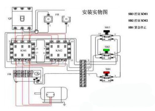 對于這種控制線路,當(dāng)要改變電動(dòng)機(jī)的轉(zhuǎn)向時(shí),就必須先按停止按鈕SB1,再按反轉(zhuǎn)按鈕SB3,才能使電機(jī)反轉(zhuǎn)。如果不先按SB1,而是直接按SB3,電動(dòng)機(jī)是不會(huì)反轉(zhuǎn)的。