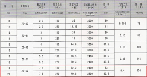 Z2-52 7.5KW/110V直流電機(jī)參數(shù)