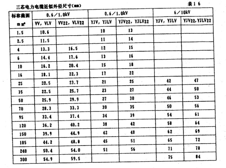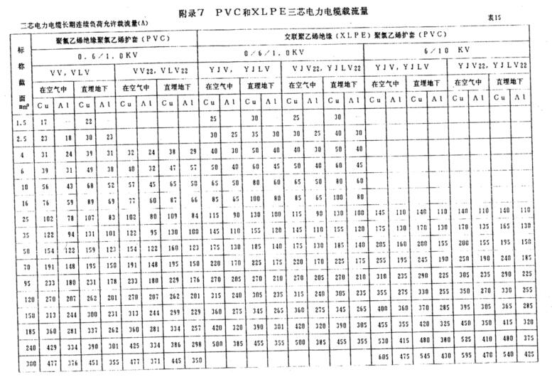 PVC和XLPE三芯電力電纜載流量